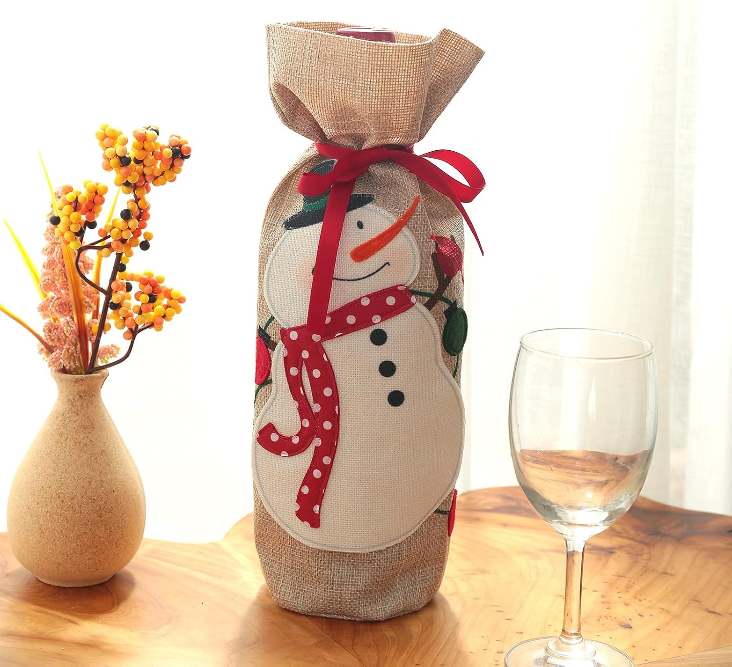 [Ideal Holiday Gift] - Our Burlap Wine Bottle Gift Bags are the perfect way to present a thoughtful gift to wine lovers during the festive season. Featuring two charming designs—Santa and Snowman—these bags embody classic Christmas elements that spread warmth and joy. They are perfect for gifting to your loved ones, friends, family, or colleagues, ensuring your wine bottle stands out during Christmas gatherings, weddings, birthdays, and holiday parties.
