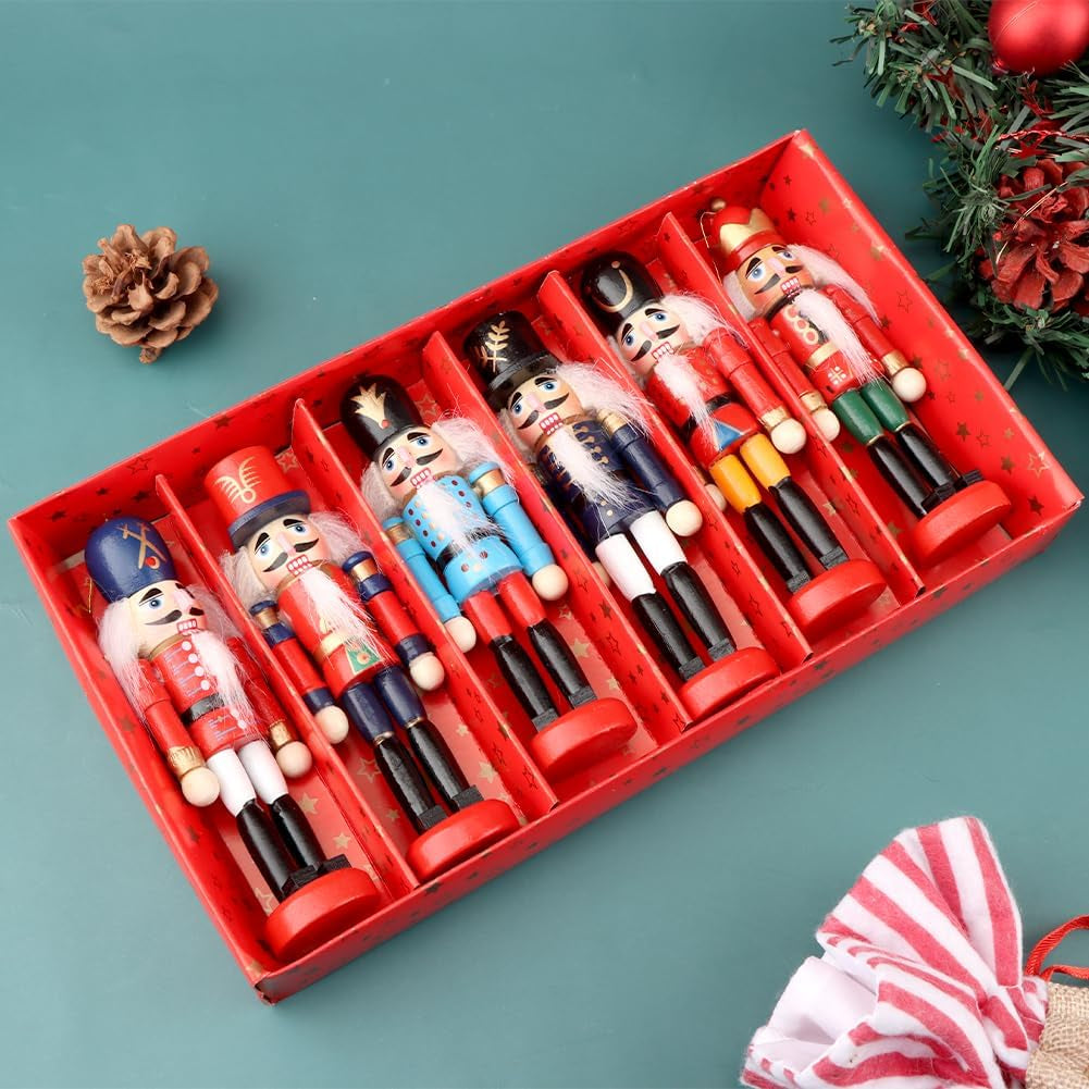 Experience the enchantment of the holiday season with our Hand-Painted Wooden Nutcracker Set. This delightful 6-piece collection features a mini king and five soldiers, each standing at 5 inches tall and crafted with meticulous care. Made from high-quality wood and lovingly hand-painted, these nutcracker ornaments serve not only as decorations but also as a celebration of the joy and warmth that Christmas brings.