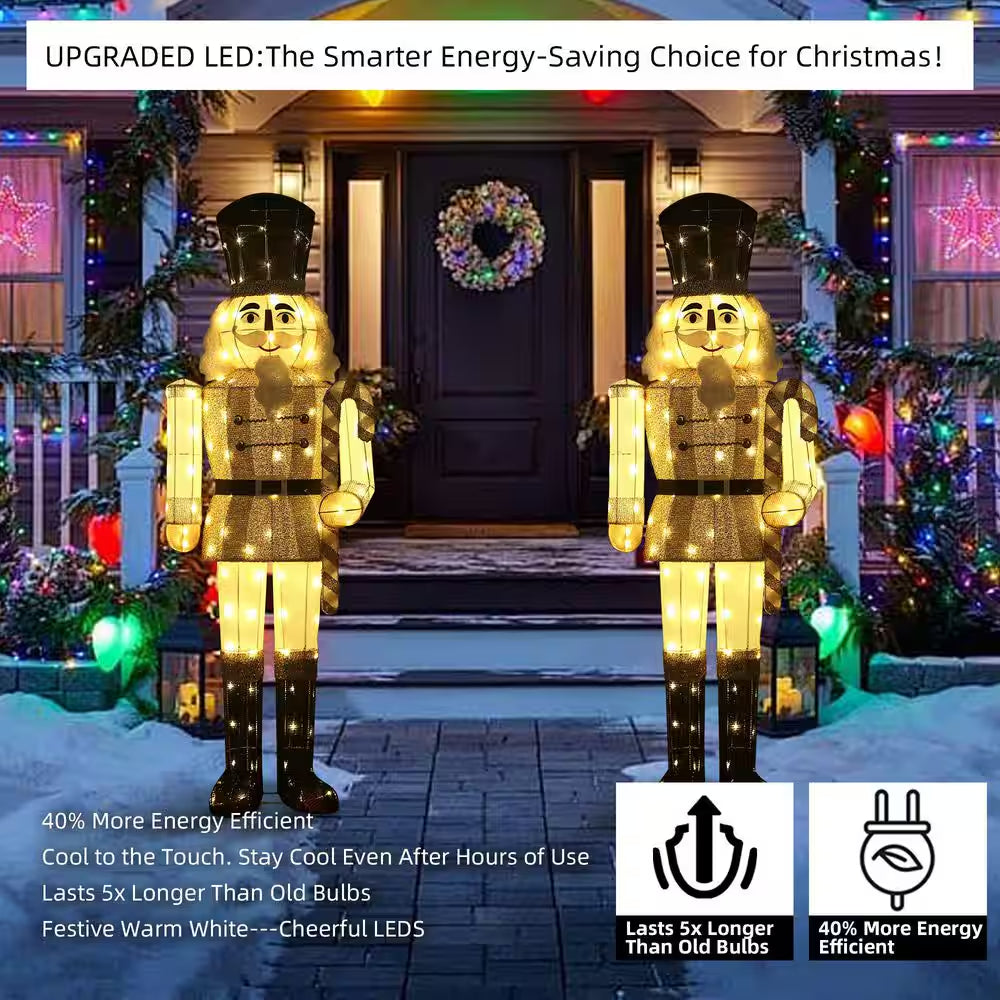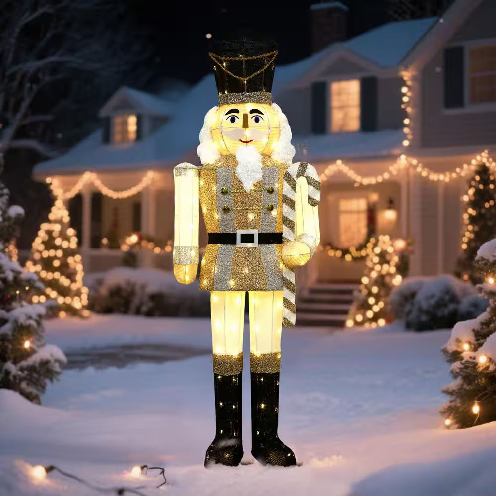 Bring timeless holiday charm to your home with this dazzling, all-weather Nutcracker Christmas Decoration! His rugged construction keeps him standing proud, while his twinkling LEDs spread cheer day and night. Perfect for flanking doorways, brightening gardens, or adding a festive touch to mantels. Easy to set up, built to last, and designed to delight-order your outdoor Christmas Nutcracker today and make this holiday season unforgettable!